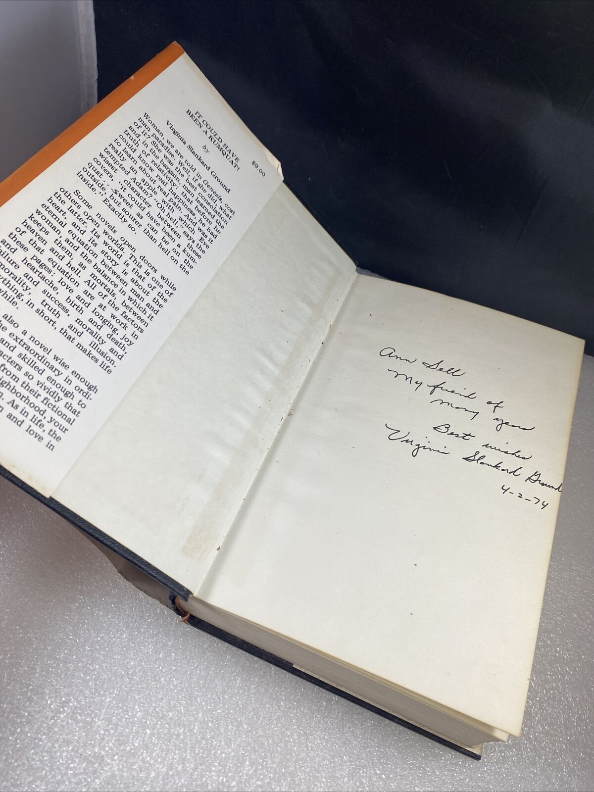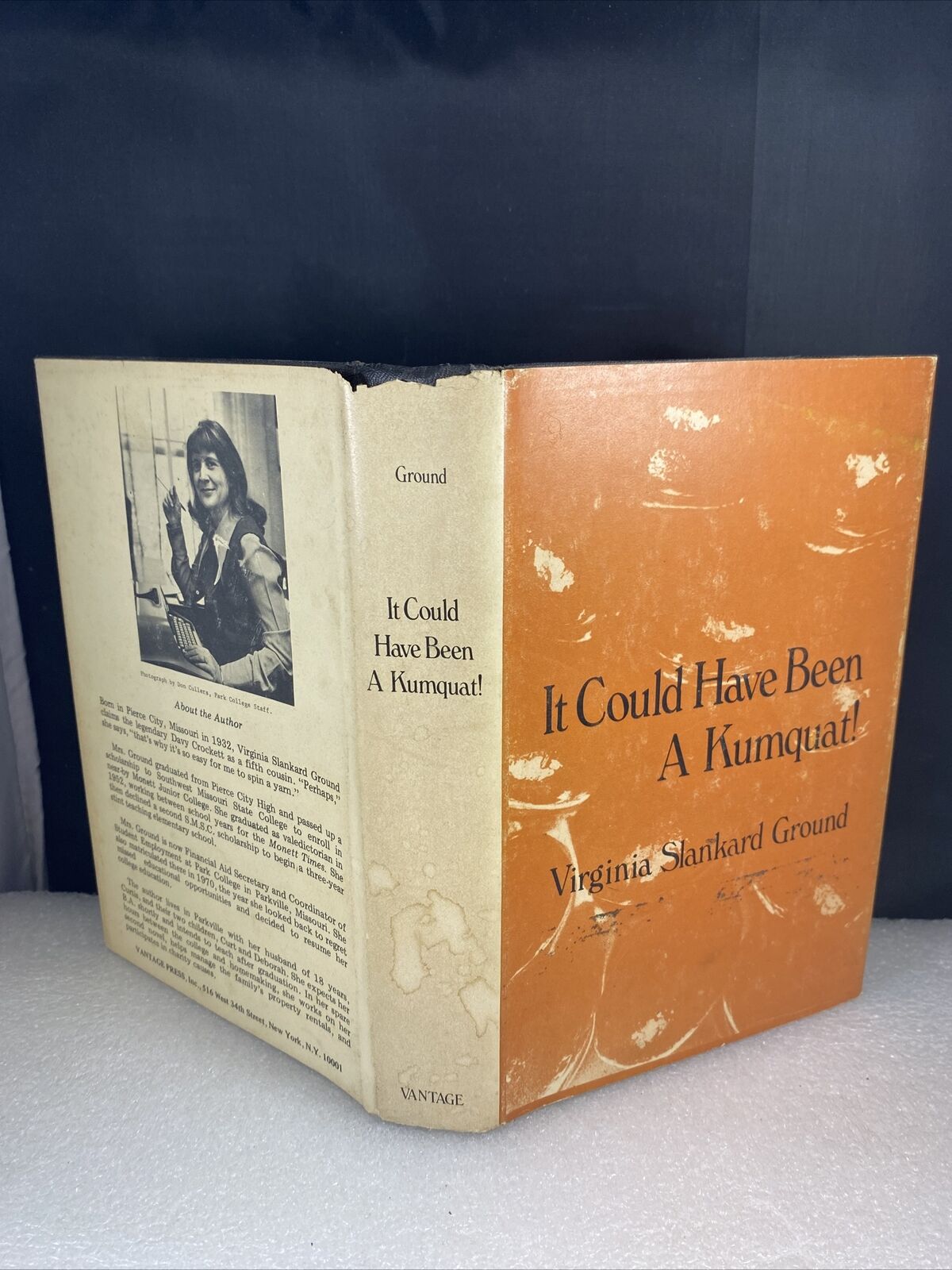 This vintage 70s book titled "It Could Have Been A Kumquat!" by Virginia Slankard Ground is a rare first edition hardcover with a signature from the author. The book is in great shape and has been well-preserved over the years. It was published by Vantage Press in 1974 and is in English. The book is perfect for collectors and enthusiasts who appreciate unique and rare books.