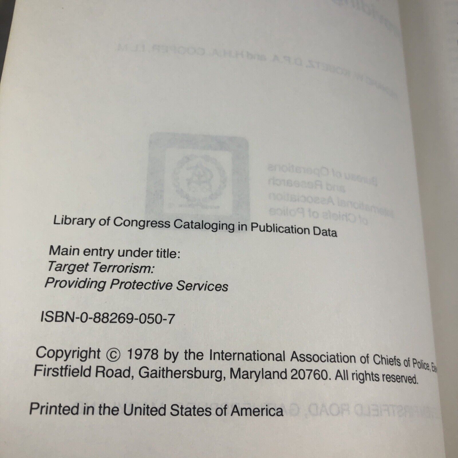 Target Terrorism: Providing Protective Services, Kobetz & Cooper, 1978 1st DJ HC
